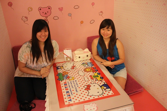 | It's creative of them to customize the tables themselves, did you notice there's also a hello kitty tissue box cover as well? ( ´ ▽ ` ) |